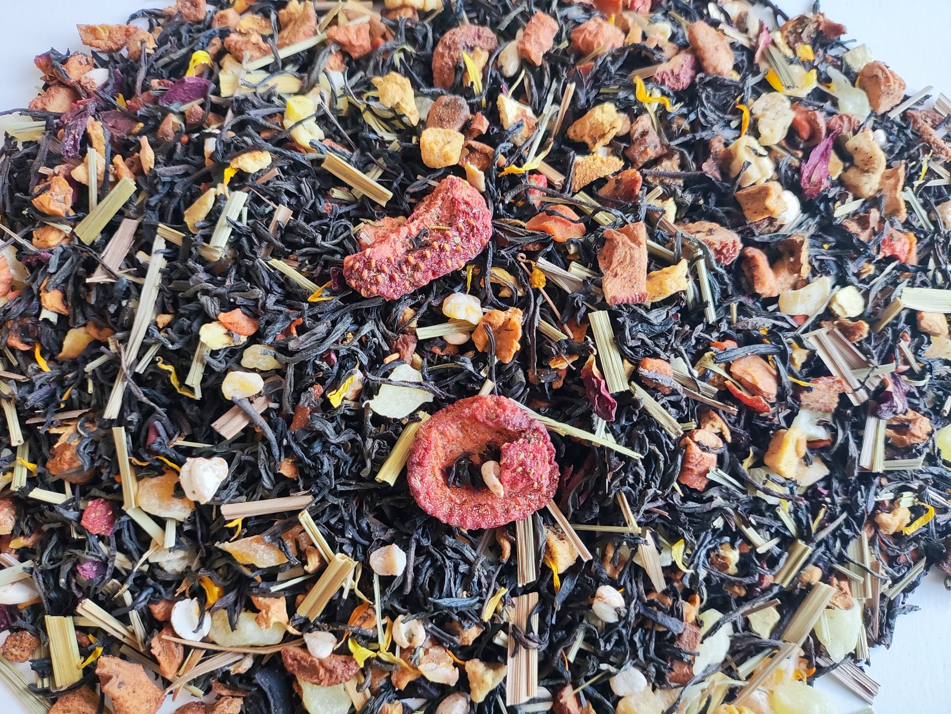 Travel to the distant land of the mythical Asqatde Home to Norse Gods, such as Odin and Thor. Imbibe this refreshing elixir mixed with hearty black tea, fresh bergamot, lemon grass, and fruits such as strawberry, mango, mandarin orange, and apple. Asqard is known for its golden apples said to maintain youth and vitality in those that eat them.