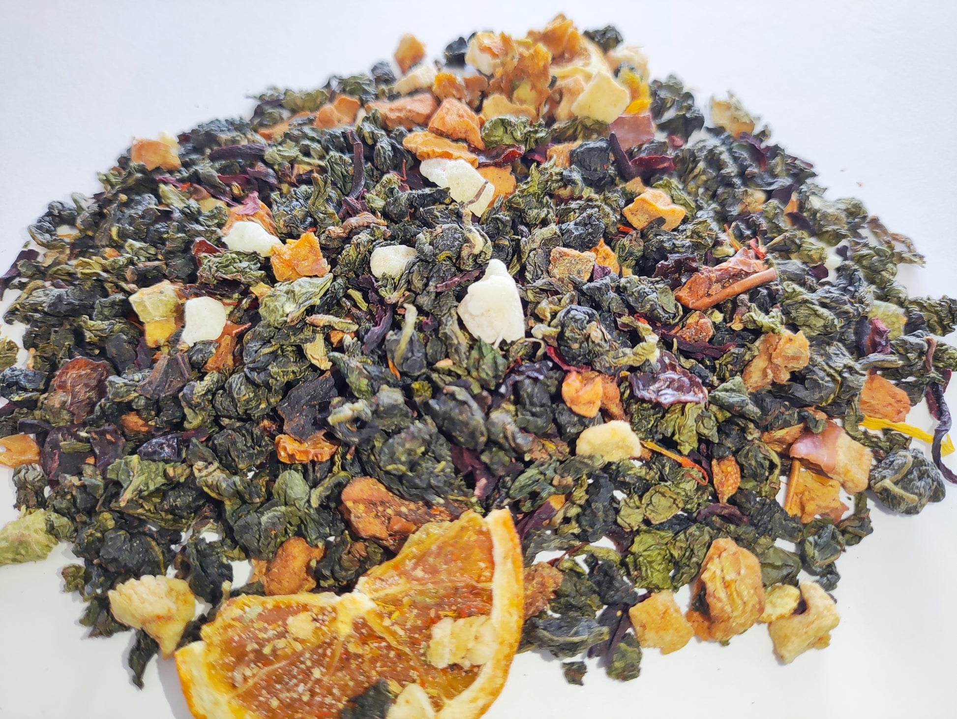 This offering we dedicate to Pomona, the Roman Goddess of fruitful abundance. She watches over flourishing fruit trees, blooming orchards, and lush gardens. Her reign in August even merits a feast in her honor on the 13th of the month. So toast this tea to her! A tart and sweet blend of Honeydew Oolong, rose hips, blood orange, and whole orange slices.
