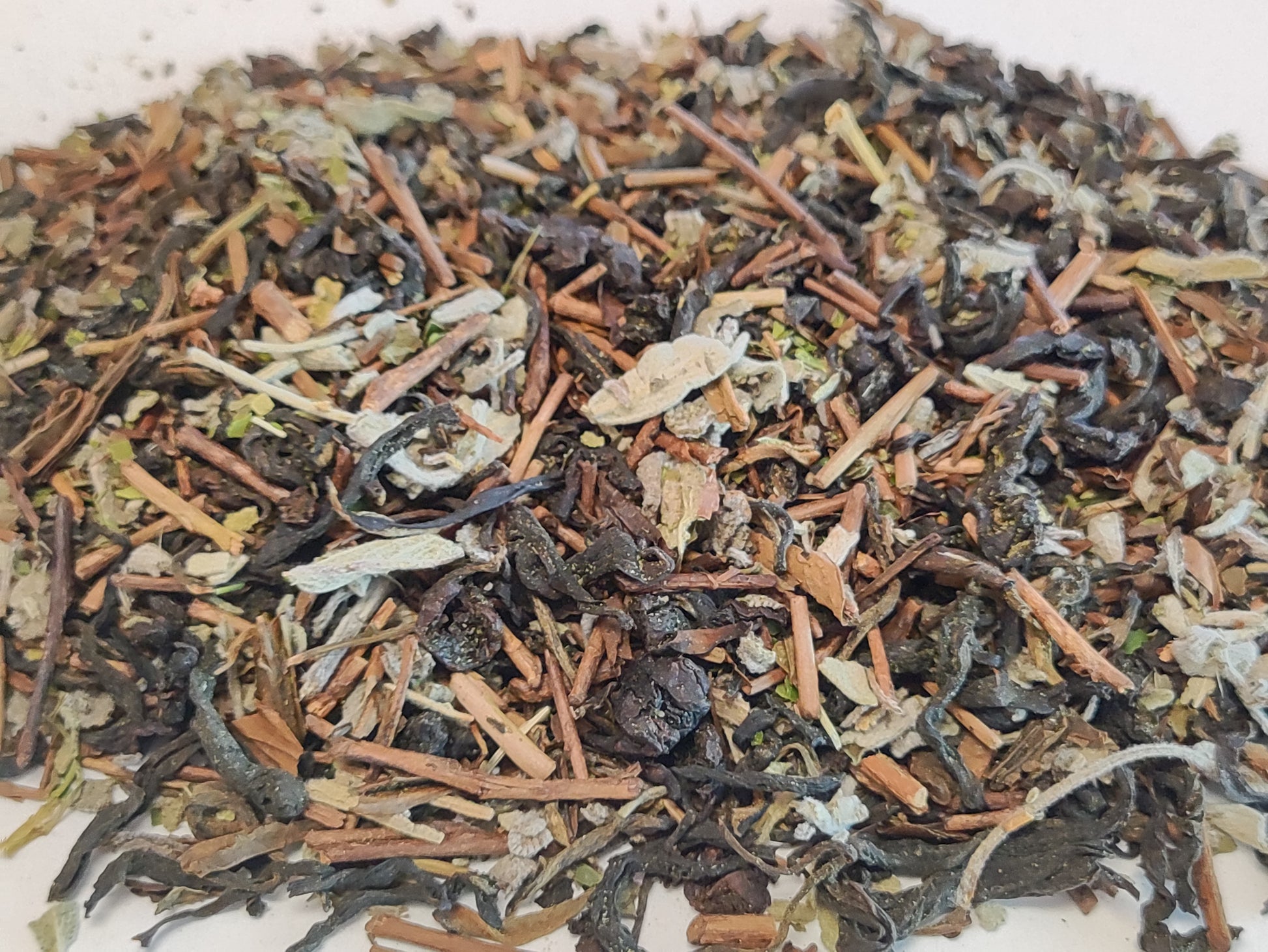 This blend is a crisp and toasty combo. Boasting Cloud 9 black tea, roasted Hojicha, Fresh Green Mate, Peppermint and Sage, this tea brings characteristics reminiscent of that freshly drenched forest feel. That golden moment when sun rays shine through the trees burning off the fog creating a magical mist.