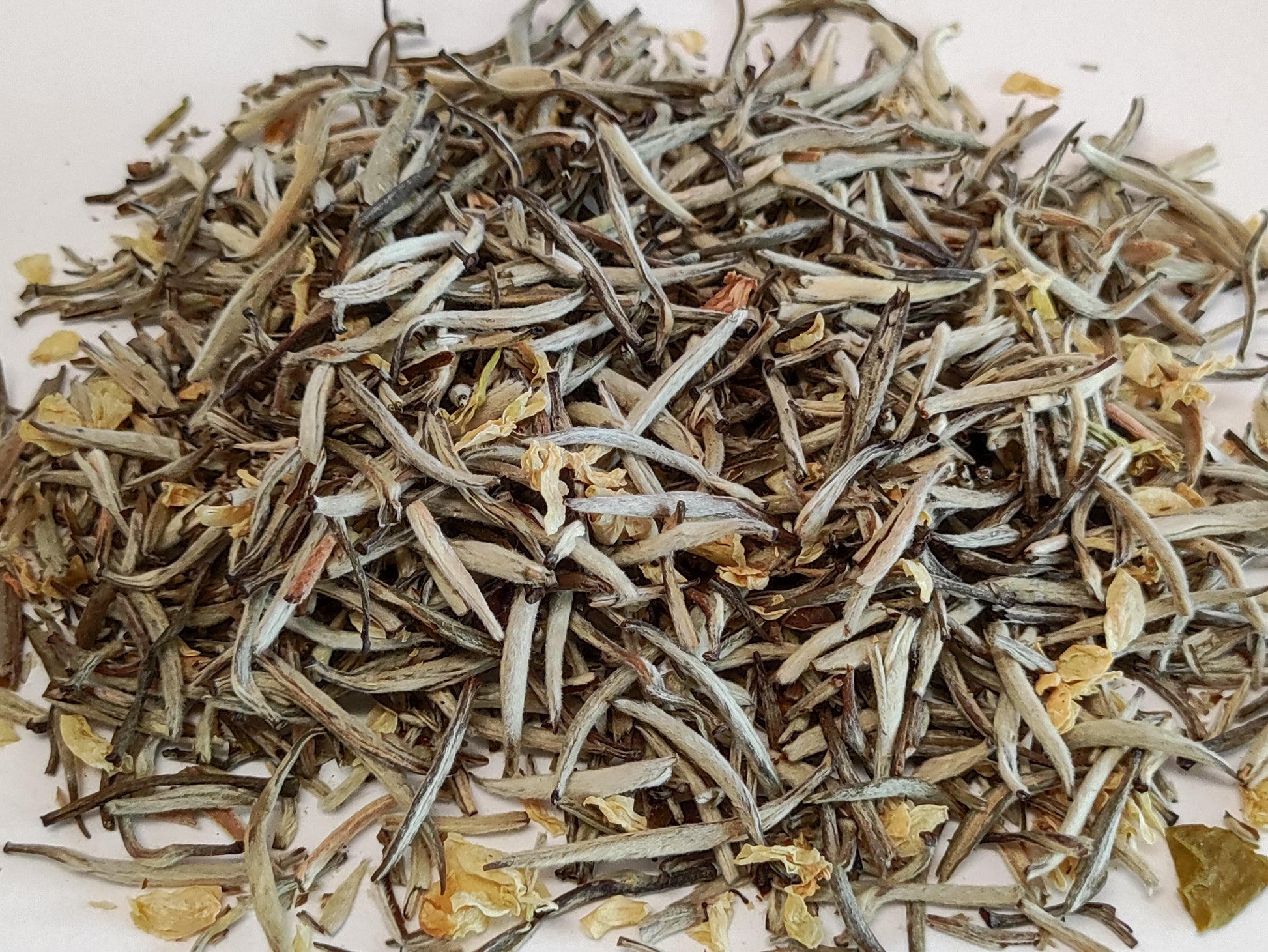 This tea is a blend of silver needle and jasmine flowers. This tea is also a staff favorite!